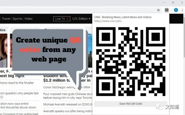 点击地址栏的图标生成页面地址的二维码。