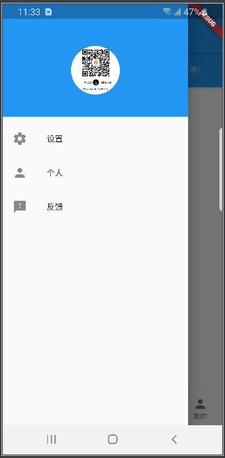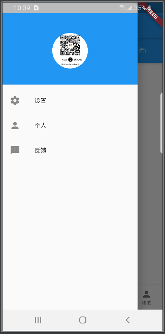其中的_popDrawer是关闭侧滑栏的方法。上述实现的效果图如下: