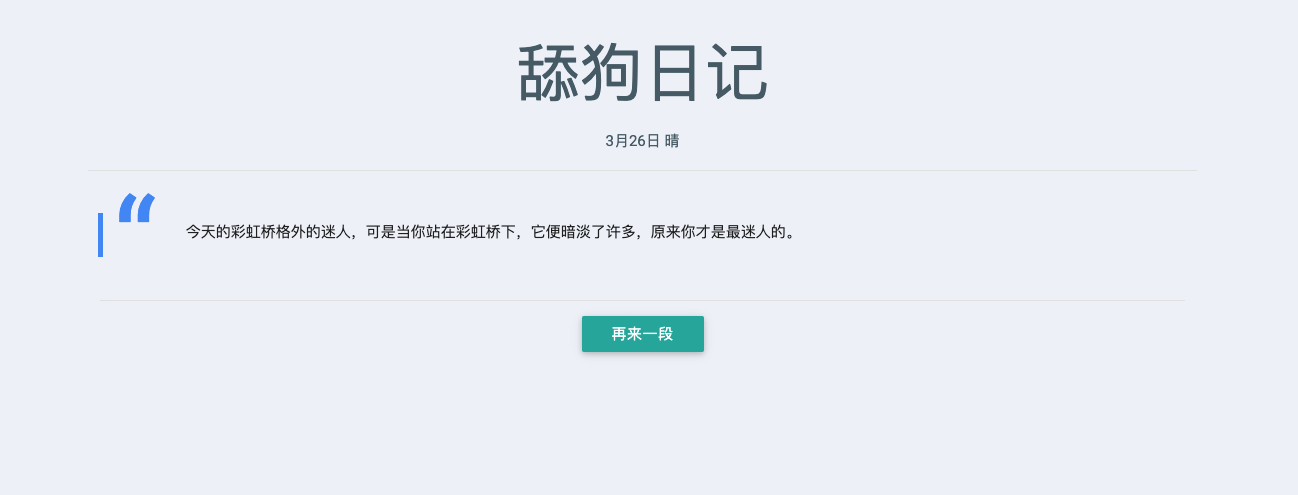 随机生成超多搞笑的舔狗日记,可复制后发空间、朋友圈或者发聊天群来活跃气氛!ps:特别卑微、特别舔!若不是真心喜欢,谁愿意做舔狗。