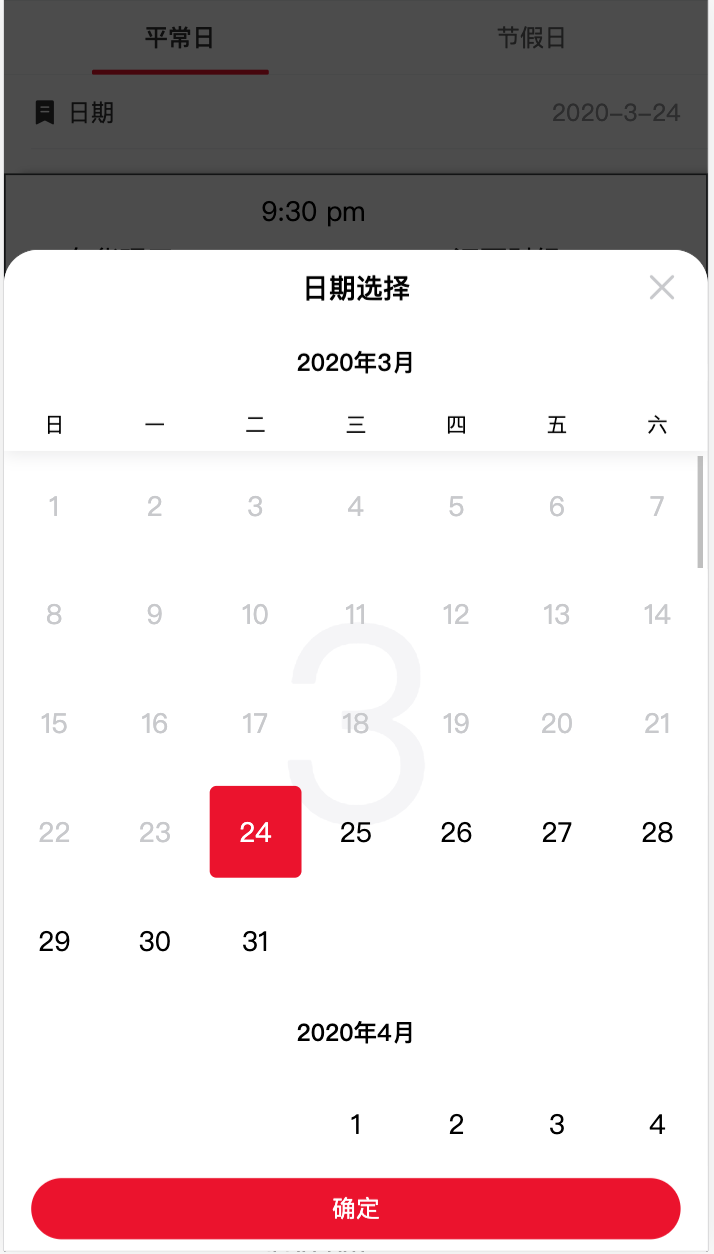 平常日可以选择日期, 节假日只能选择节日