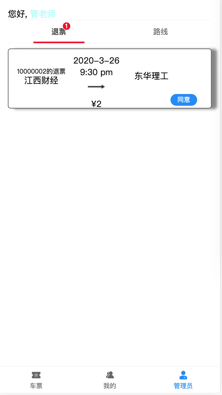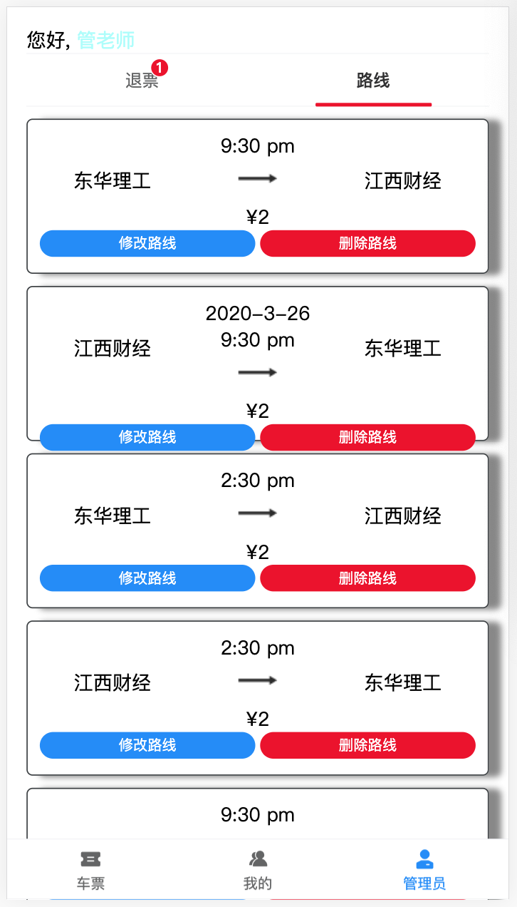 处理学生退票订单,以及管理路线