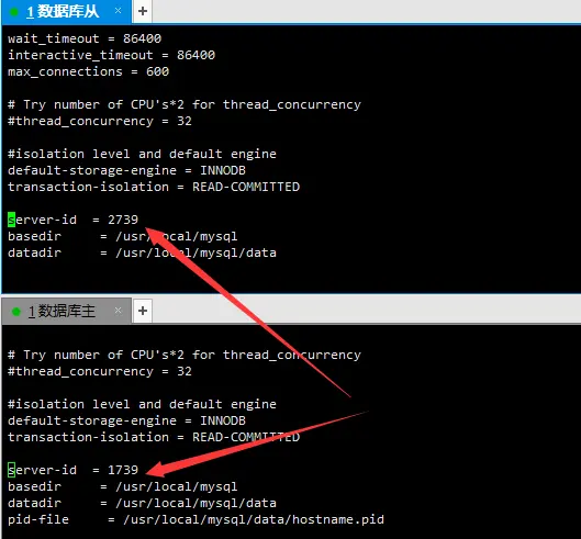 - 修改从库server-id为