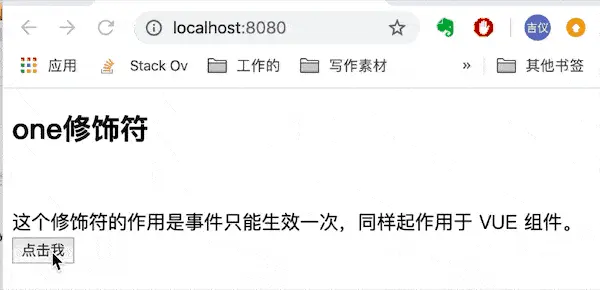 这个修饰符的作用是事件只能生效一次,同样起作用于 VUE 组件。