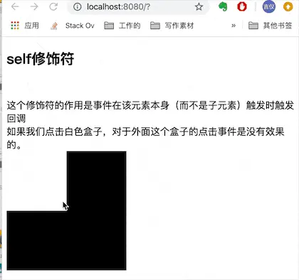 这个修饰符的作用是事件在该元素本身(而不是子元素)触发时触发回调。