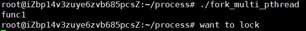 子进程进入想要锁的状态,但是没有后续输出,原因就是fork的时候mutex被锁住了,而子进程把mutex被锁的状态复制了,而又没有其它子线程来释放锁,所以一直请求不到锁阻塞在pthread_mutex_lock函数。