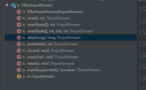 这里还会有人问 既然inputstream是一个抽象类,那你说的默认实现为啥不在inputSteream里面写? 为啥要画蛇添足加一个filterins来写? 我们看个图