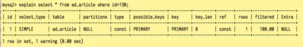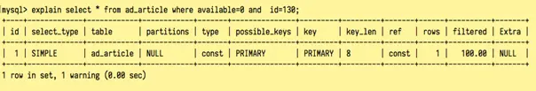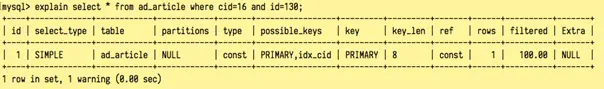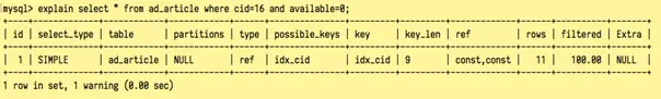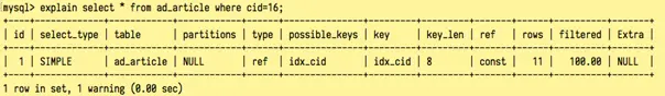 结果显示用到了idx_cid,接下来再看第二个字段的分析:
