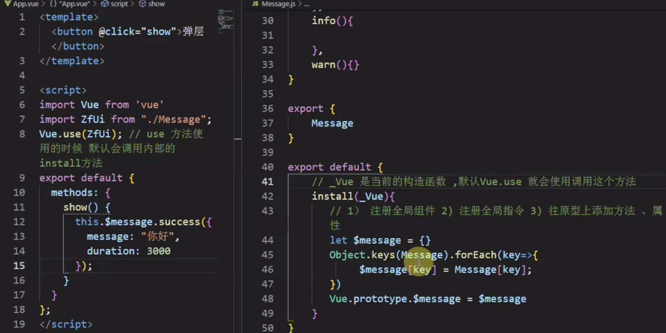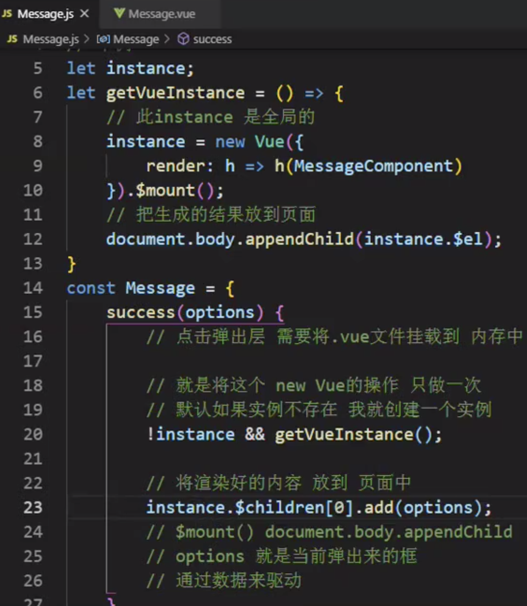 自定义message组件 奔跑的金龟 2020-03-26 621 阅读1分钟 自定义message组件 import MessageComponent from './Message.vue' 两种使用方法 1、import { Message } from './Message.js' 使用: Message.success({ message:'你好', duration:3000 }) 2、this.$message.success({ message:'你好', duration:3000 })