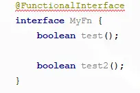 说起Lambda,就必须了解函数式接口,因为要使用Lambda,必须在函数式接口上使用。 函数式接口:就是一个有且仅有一个抽象方法,但是可以有多个默认方法的接口,这样的接口可以隐式转换为Lambda表达式。一般在函数式接口上都有个注解@FunctionalInterface,该注解的作用类似@Override一样告诉编译器这是一个函数式接口,用于编译期间检测该接口是否仅有一个抽象方法,如果拥有多个则编译不通过。如下图所示
