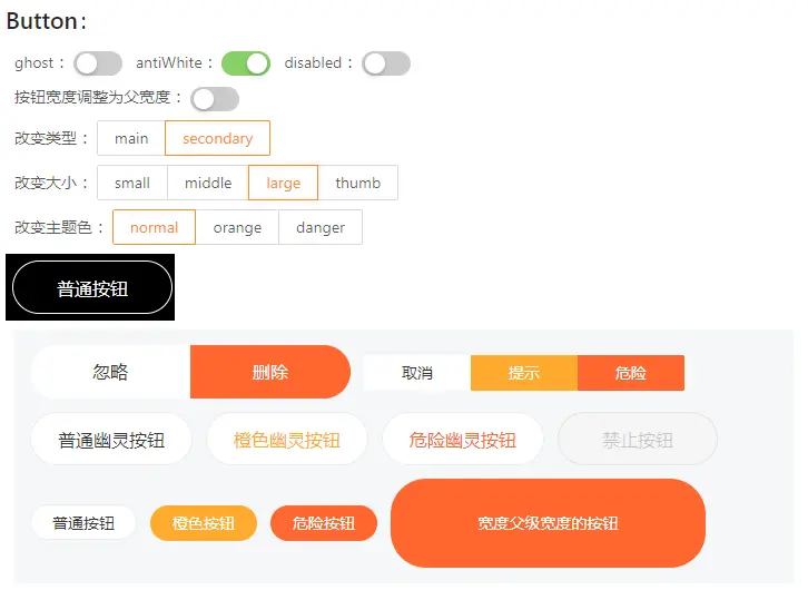 这属于第一次开发公共组件,之前呢主要都还是在项目里边,抽离一些简单复用逻辑的业务组件,举个例子,对于 Button 组件,与我来说,我之前更多可能考虑的就只是一些常用的状态,比如说之前的Button组件代码是这样的 :