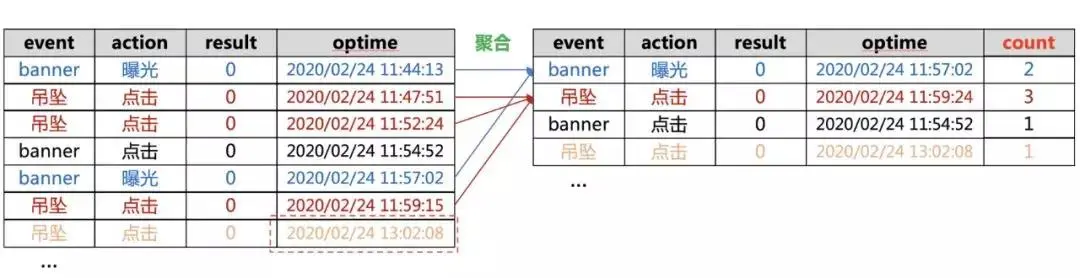 另外,针对特定的需求场景,有些数据可能是不能聚合的。例如,我们对于操作时间超过1小时的相同数据是不会进行聚合处理的,因为今年春节活动有场次的概念,每场活动间隔1个小时,产品同学可能需要以场次维度统计相关数据,若合并可能会干扰数据统计的准确性。