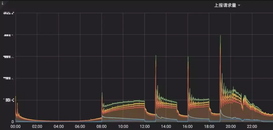 下图为本次春节红包活动在除夕当天的数据上报请求曲线,实际上报请求峰值为预估上报请求峰值的13.33%。