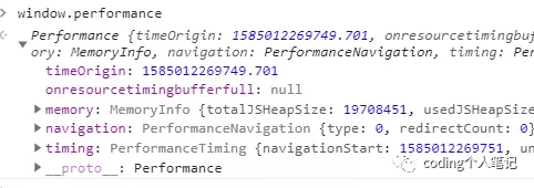 今天学习一下前端性能监控的API-performance。随便打开一个网页,然后控制台打印一下这个performance,