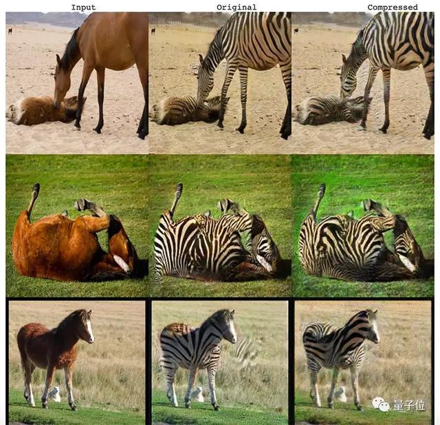 bash ./datasets/download_real_stat.sh horse2zebra B测试的结果显示,原始CycleGAN的FID是65.687,压缩后,模型的FID是65.312,两者差距不大。