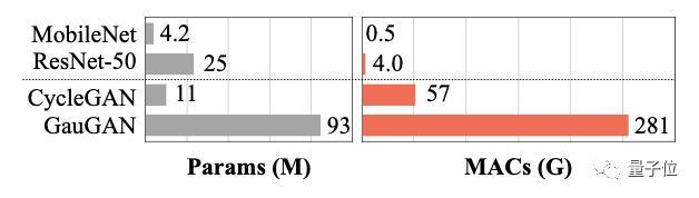 GAN压缩将乘法累加运算(MAC)的数量减了9~21倍。