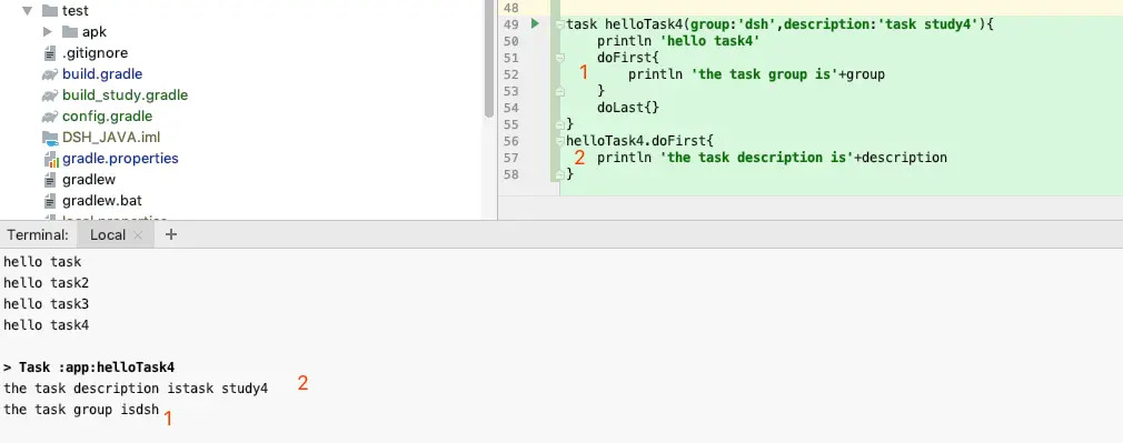 task helloTask4(group:'dsh',description:'task study4'){