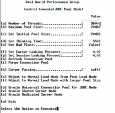 视频中对Oracle数据库进行压力测试,9600并发线程进行数据库操作,每两次访问数据库的操作之间sleep 550ms,一开始设置的中间件线程池大小为2048: