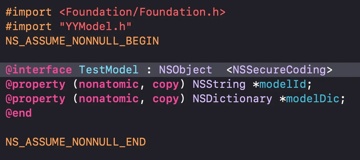 声明一个继承于NSObject 的 TestModel 对象,并遵循 NSSecureCoding 协议