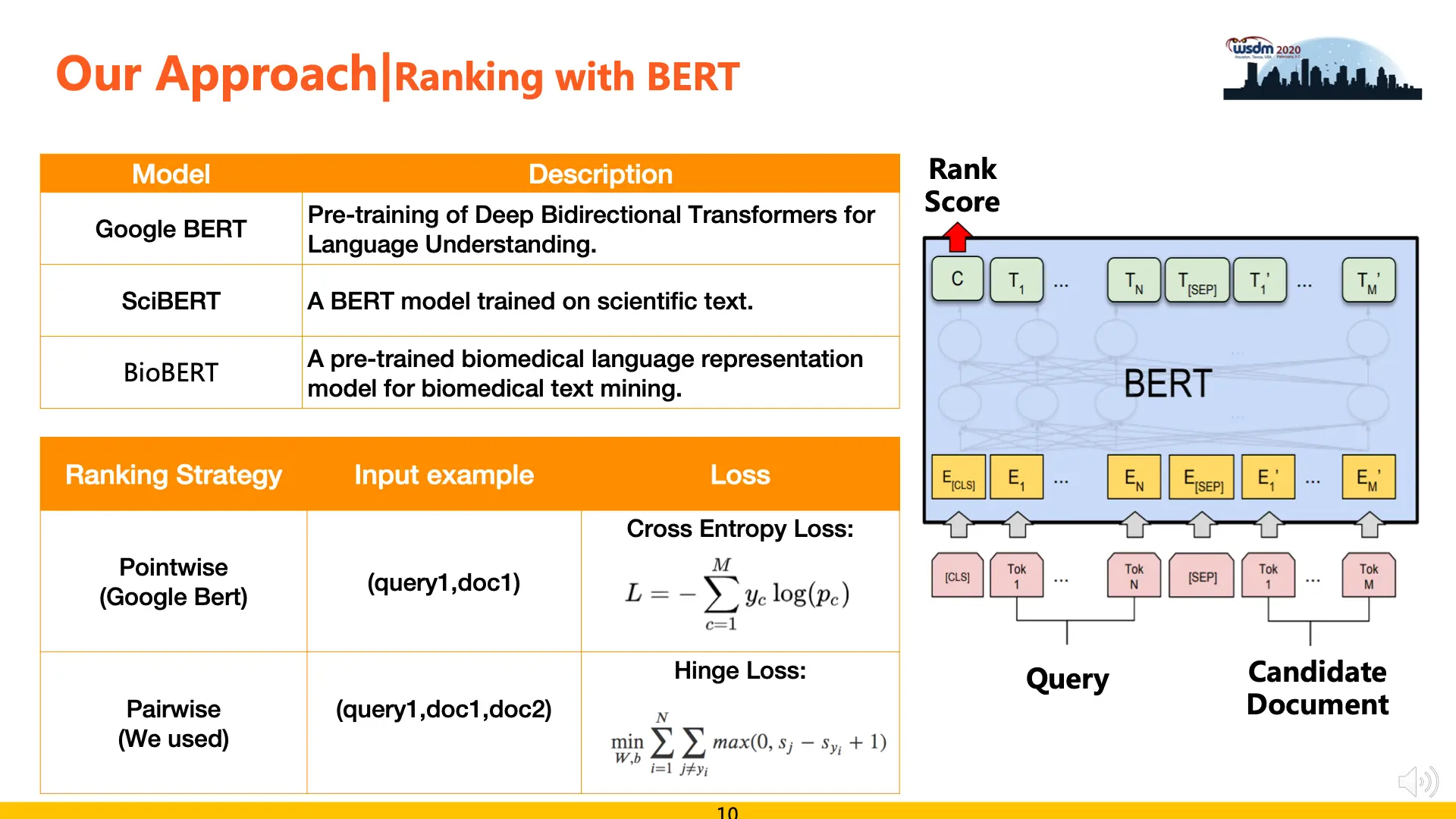 在基于BERT进行排序的过程中,由于评测数据多为生命科学领域的论文,我们还使用了SciBERT和BioBERT等基于特定领域语料的预训练BERT模型,相比Google的通用BERT较大的效果提升。