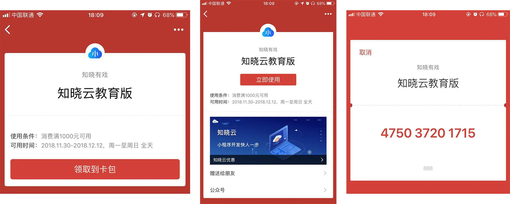 该触发器将会在消费者核销微信优惠券的时候触发,并调用一个云函数。调用的云函数会将核销的相关信息保存在一个特定的数据表中,由此来记录公众号卡券的使用情况。