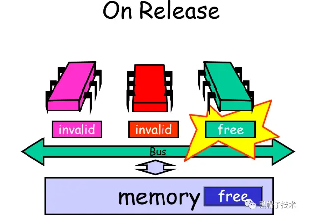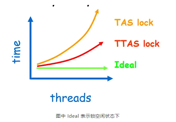 接下来还是回归到我们的话题中,为什么 TAS 的性能要比 TTAS 的性能差了这么多?根本原因是因为 TAS 每一次的执行都是在总线上发送了一个广播消息,这个消息表明执行 TAS 指令的 CPU 想要修改数据,首先需要让其他CPU缓存中的数据副本失效,然后它才可以修改这个数据。这个信息通过总线发出,所以当总线被一个线程占用后,将会延迟其他所有的线程,包括哪些没有等待锁的线程。而且这个消息发出后其他CPU接收到了该消息会删除掉它们本地缓存中的数据副本,而再次去读取的时候产生了 cache miss ,这时候就要通过总线来获取这个数据,这时候总线再次被占用。同时当某个线程试图释放锁的时候,由于总线正在被其他线程占用,释放锁的操作也被延迟了。当某个线程试图获取一个空闲的锁时也会由于总线被占用而延迟。所以结论是:TAS算法存在着大量的总线占用,每个线程每一次自旋都会产生大量的总线流量,从而延迟其他线程(因为其他线程也需要使用总线)。