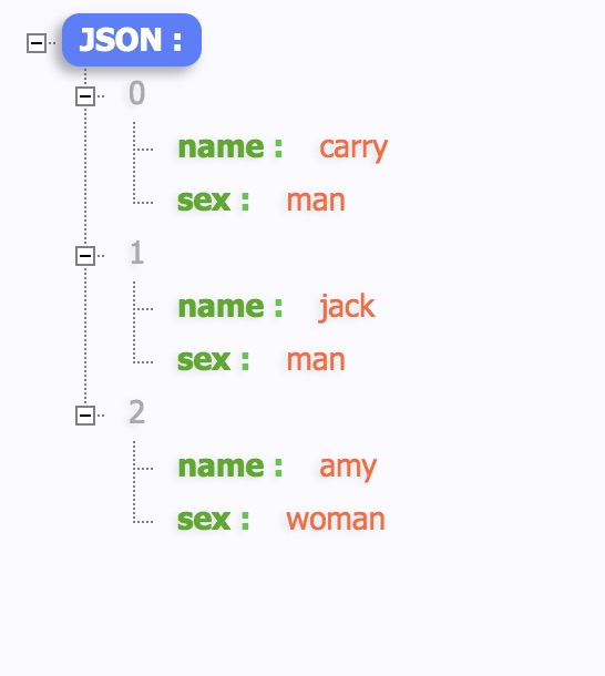 <?php //JSON字符串转PHP数组 $json = '[{"name":"carry", "sex":"man"}, {"name":"jack", "sex":"man"}, {"name":"amy", "sex":"woman"}]' ; echo ($json) ; ?>