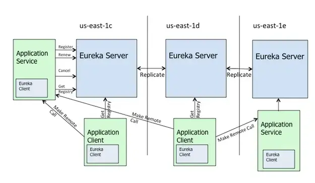 - 其中Eureka负责服务的注册与发现,很好将各服务连接起来