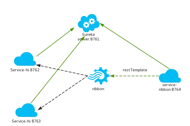 - sercvice-ribbon端口为8764,向服务注册中心注册