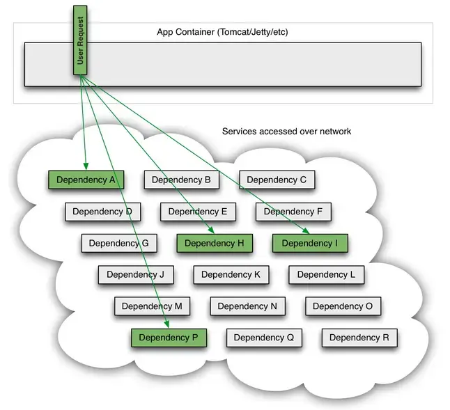 Netflix开源了Hystrix组件,实现了断路器模式,SpringCloud对这一组件进行了整合。 在微服务架构中,一个请求需要调用多个服务是非常常见的,如下图: