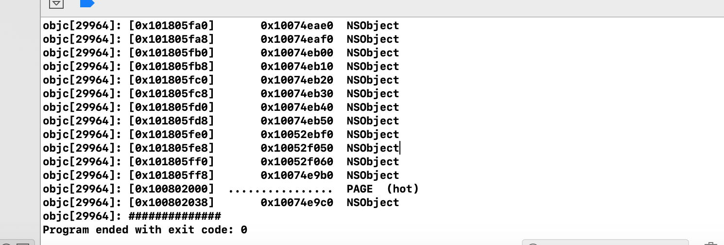 objc[29455]: [0x101005000] ................ PAGE (hot) (cold)