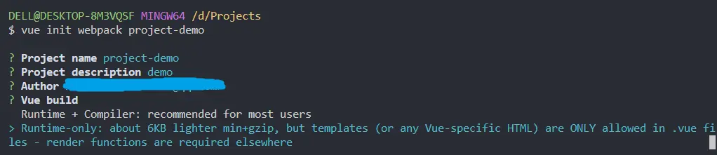 $ vue init <template-name> <project-name>