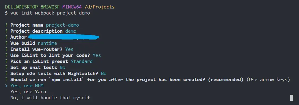 $ vue init webpack my-project将从vuejs-templates/webpack中提取模板信息,根据此模板信息生成项目(./my-project/)