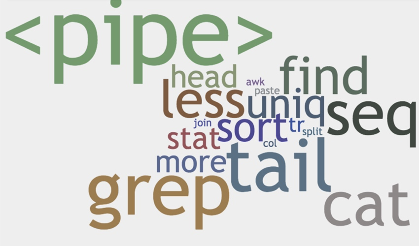 4 sort 4 uniq 7 tail 5 less 3 more 3 stat 3 head 5 find 7 grep 6 cat 6 seq 2 tr 1 col 1 paste 1 join 1 split 1 awk 9