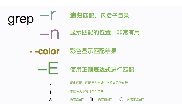 grep用来对内容进行过滤,带上--color参数,可以在支持的终端可以打印彩色,参数n则用来输出具体的行数,用来快速定位。这是一个必须要熟练使用的命令。