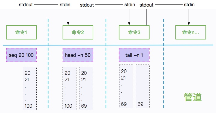 接触过编程语言的都知道stdin、stdout、stderr的概念。让我们重新组织一下针对于管道的定义:前面命令的输出(stdin),将作为后面命令的输入(stdout)。