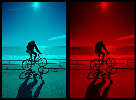 使用上面的代码分别将这张图片与从Colors.Red(255,0,0)和Colors.Cyan(0,255,255)创建出来的CompositionColorBrush使用BlendEffectMode.Lighten进行混合,得到下面的效果: