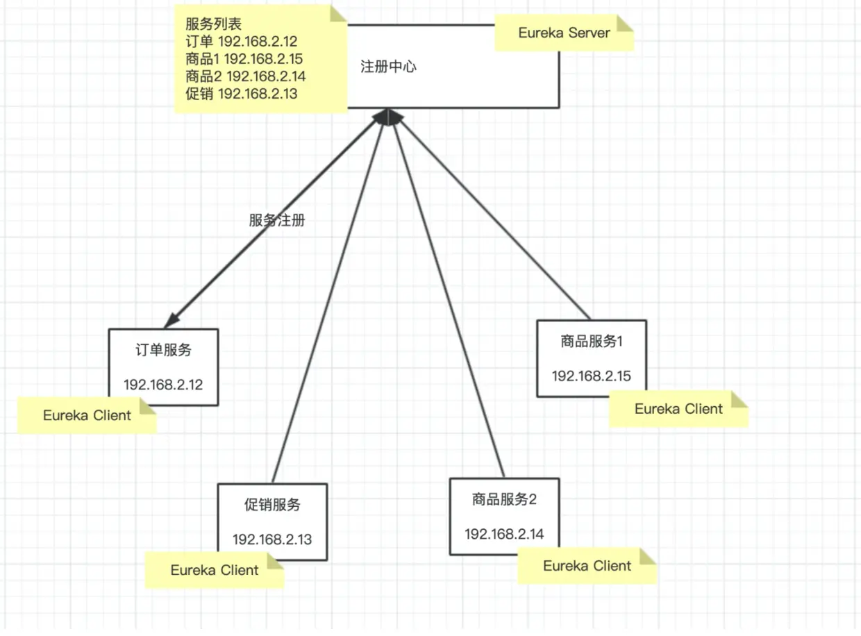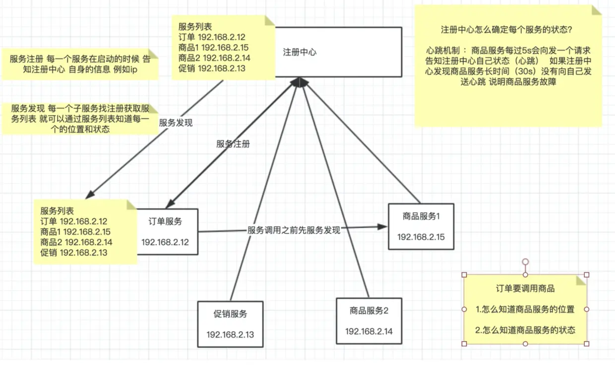 - 商品服务想要调用订单服务,怎么知道订单服务1 和 订单服务2的地址?如果临时增加一个订单服务3,那么怎么告诉商品服务订单服务3的地址?