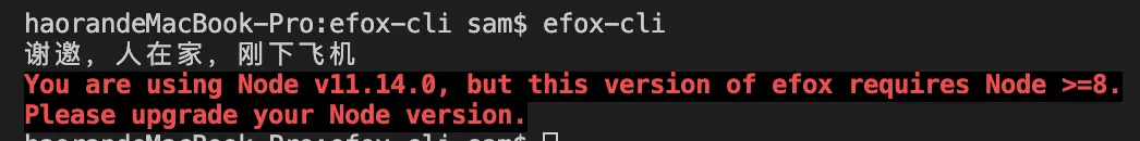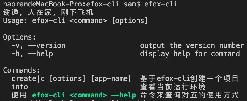 还可以定义参数问题,如只执行efox-cli输出help信息