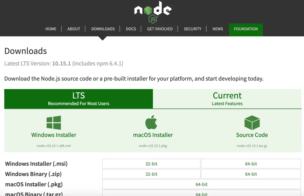 否则,点击 Node.js,进入官网下载自己电脑环境对应的版本安装,安装好node后npm会一起安装完成。