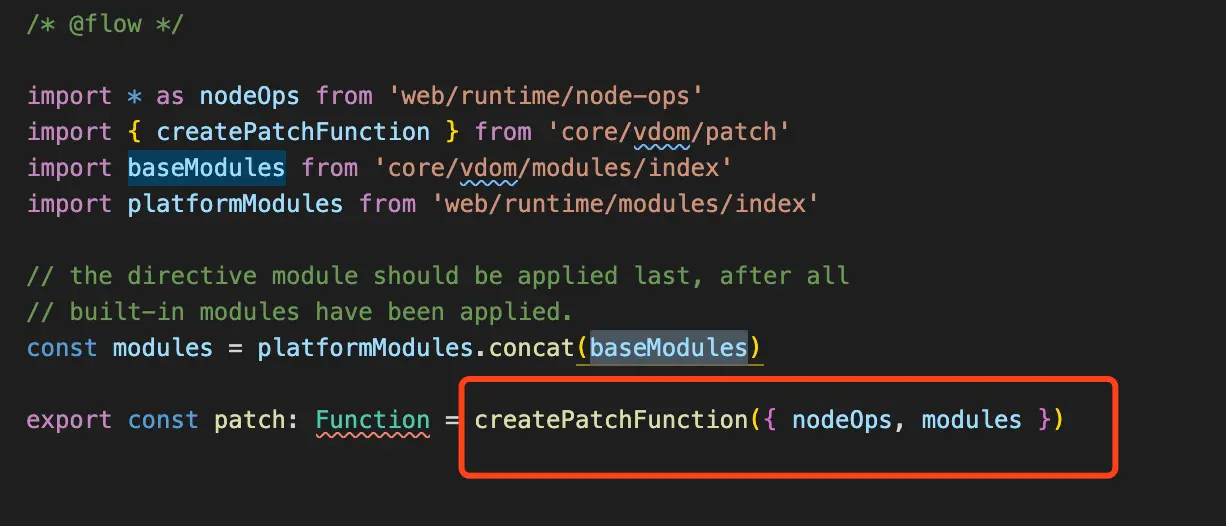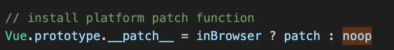 这段代码就是判断是否浏览器环境下,判断条件很简单: typeof window !== 'undefined',是就执行patch函数,否则的话就不执行任何操作: