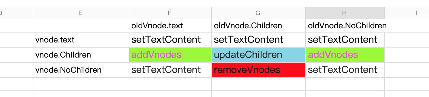 - newEndIdx 结束指针,指向ch中待处理部分的尾部,对应的vnode也就是newEndVnode