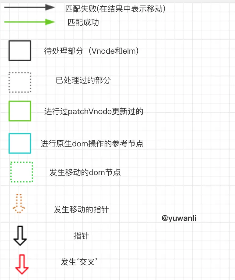 - oldKeyToIdx 是一个map,其中key就是常在for循环中写的v-bind:key的值,value 对应的就是当前vnode,也就是可以通过唯一的key,在map中找到对应的vnode updateChildren使用的是while循环来更新dom的,其中的退出条件就是!(oldStartIdx <= oldEndIdx && newStartIdx <= newEndIdx),换种理解方式:oldStartIdx > oldEndIdx || newStartIdx > newEndIdx,什么意思呢,就是只要有一个发生了‘交叉’(下面的例子会出现交叉)就退出循环。