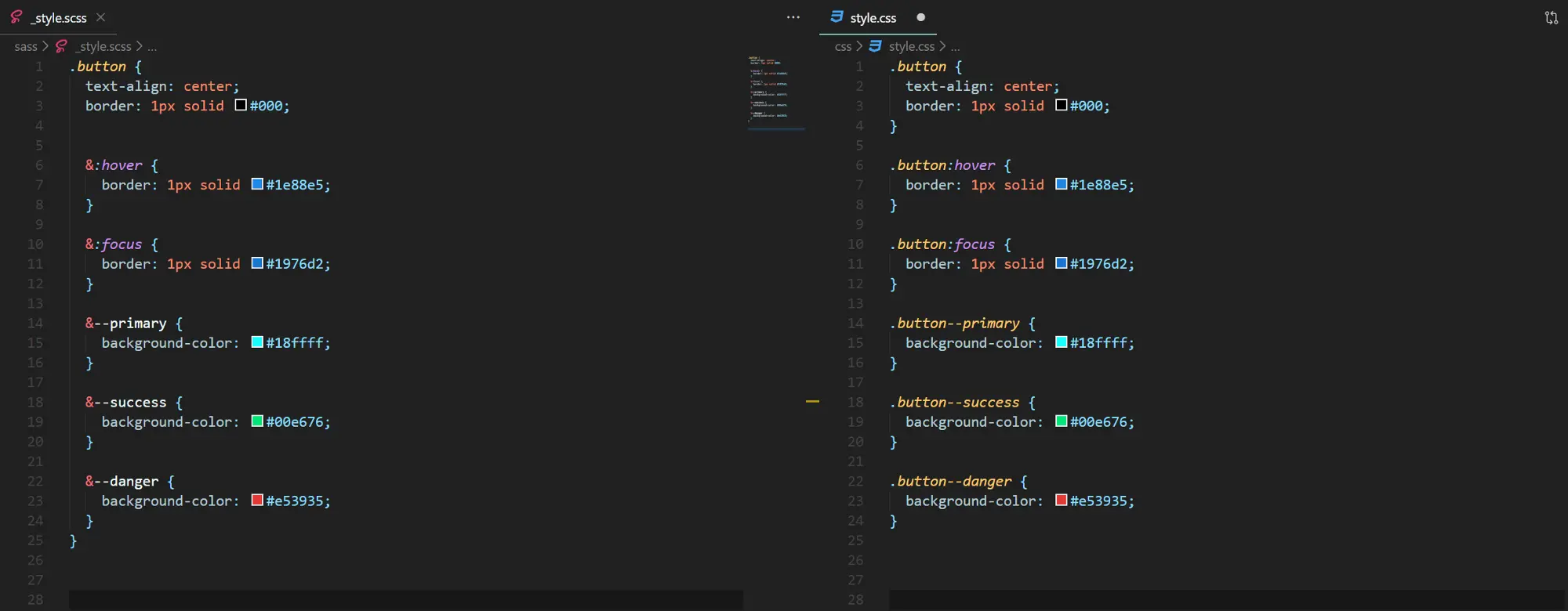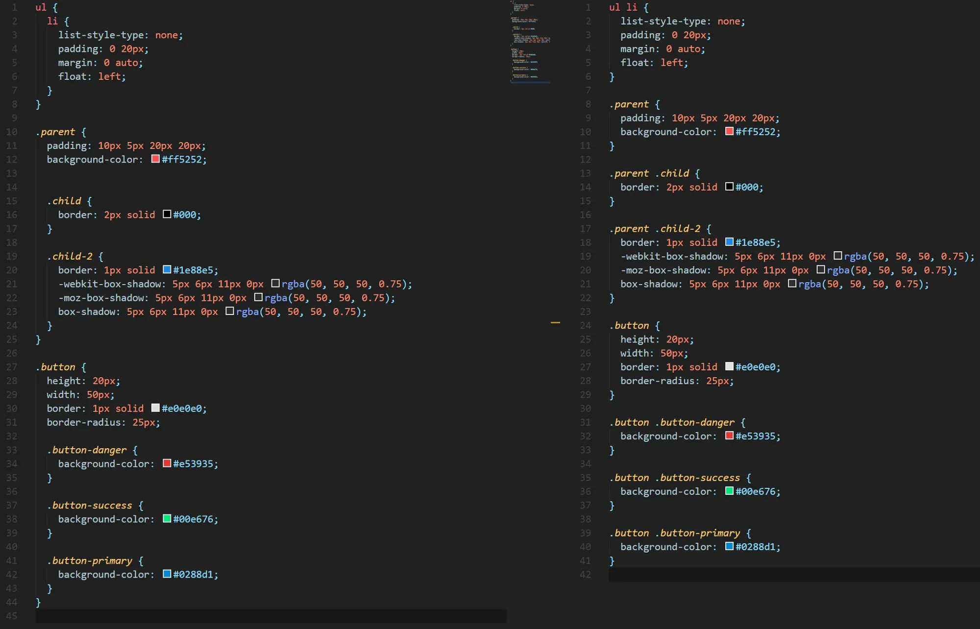 左: SASS **右:**从SASS编译出的CSS
