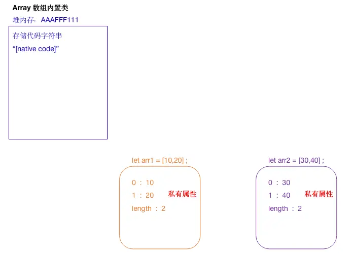 数组arr1中的0:10,1:20,length:2 都是arr1实例的私有属性;