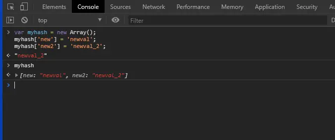 myhash['new2'] = 'newval_2';