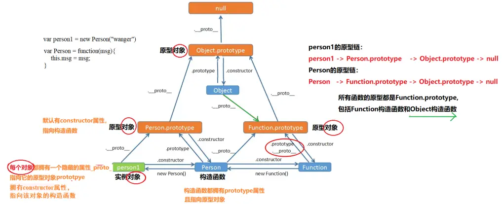 构造函数和原型以及对象之间的关系如下图所示: