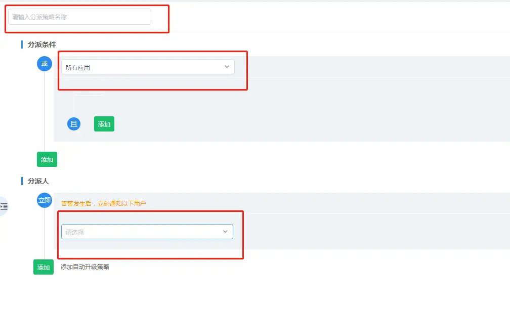 分派策略:设置的是告警发生时分派给的人。当然这点你也可以不设置,这样它会默认通知所有人。