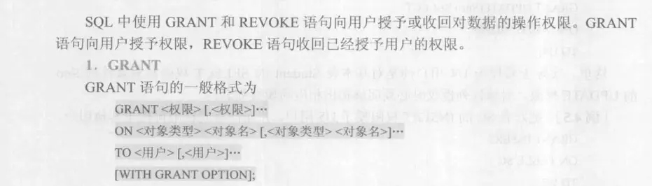 用户权限由两个要素组成数据对象和数据操作。 在数据库中定义存取权限称之为授权。