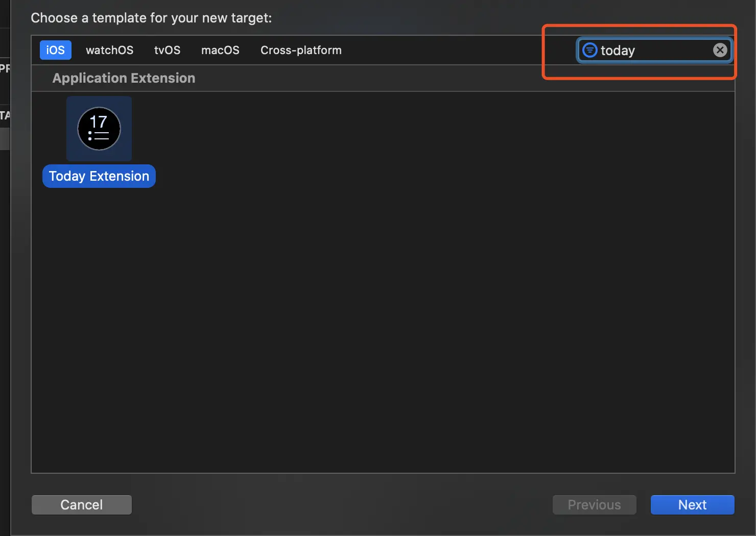 1, 添加一个 target,如下图(图中的 TodayWidget 是我已添加的组件)