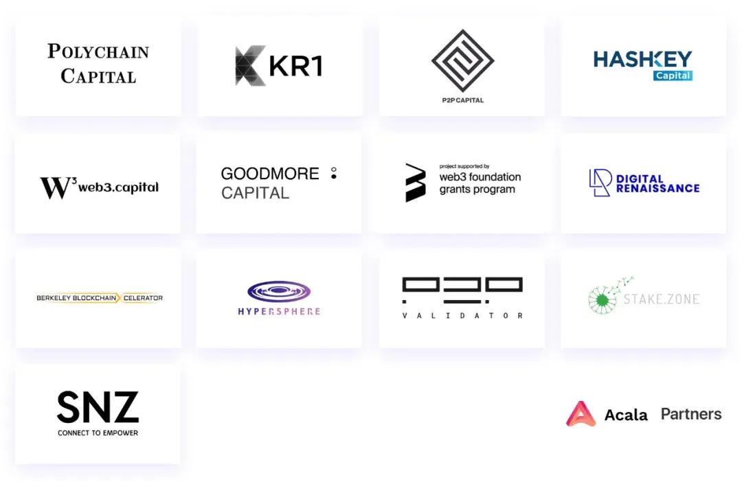 继 3 月 10 日,Acala 成功入选 UC Berkeley 2020 年春季孵化加速器后, Acala 基金会陆续获得了数家全球知名区块链投资机构的支持,旨在帮助 Acala 去中心化跨链稳定币协议与释放质押流动性平台成为 Polkadot 网络中开放金融的基础设施。Acala 基金会相信此次新增的合作伙伴—— Polychain、Hashkey、P2P Capital、KR1、SNZ、Hypersphere Ventures、Web3.Capital、Stake.Zone、Goodmore Capital、Digital Renaissance 是 Acala 建立未来可持续、开放和坚实的金融基础设施的长期盟友。